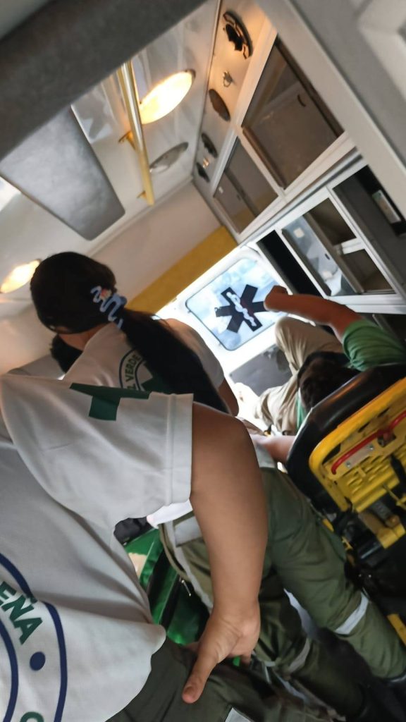 Socorristas de Cruz Verde Salvadoreña acudieron al lugar para brindar atención a la persona afectada, quien presentaba traumas leves, por lo que fue asistida en el sitio sin necesidad de traslado a un centro hospitalario.