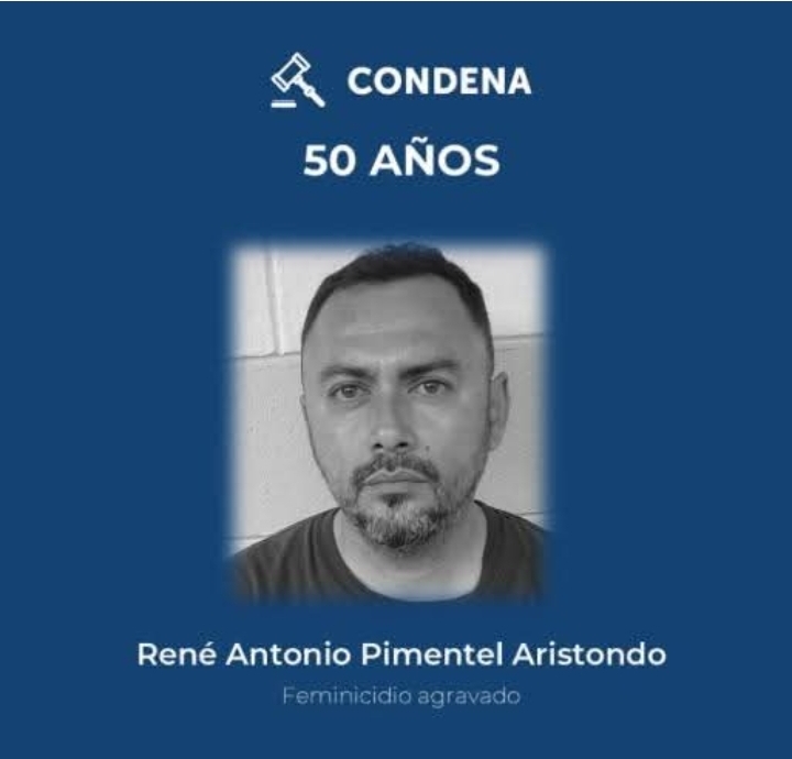 Chalchuapa. — La Fiscalía General de la República informó que René Antonio Pimentel Aristondo fue condenado a 50 años de prisión por el delito de feminicidio agravado.