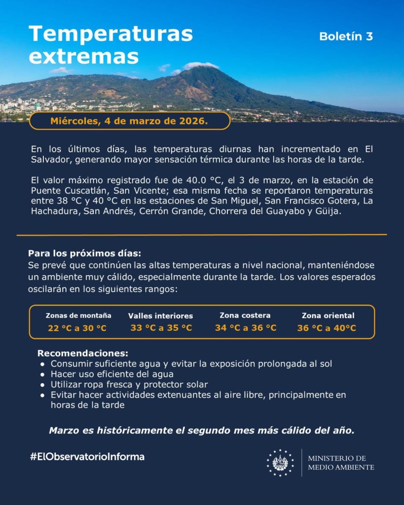 El llamado es a tomar precauciones para prevenir golpes de calor y otras afectaciones relacionadas con las altas temperaturas.