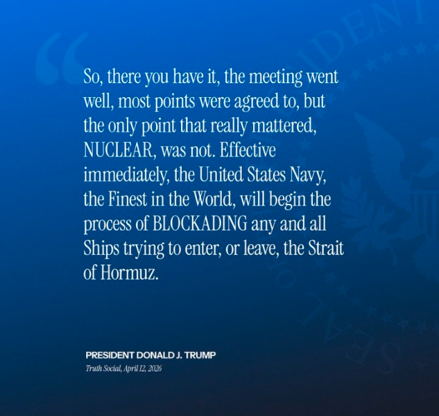 La medida fue confirmada luego de que las negociaciones de paz con Irán, desarrolladas en Islamabad, concluyeran sin un acuerdo definitivo, aunque ambas partes mantienen vigente un alto al fuego temporal.