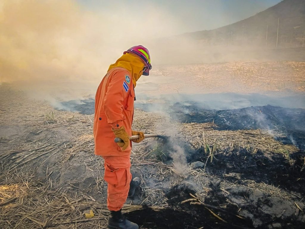 Otro incendio fue atendido en el Calle Dulce Paseo El Prado, distrito de Cuscatancingo, San Salvador, donde las llamas consumían un terreno con rastrojo. En este punto, los equipos utilizaron herramientas manuales para sofocar el fuego y evitar mayores daños.